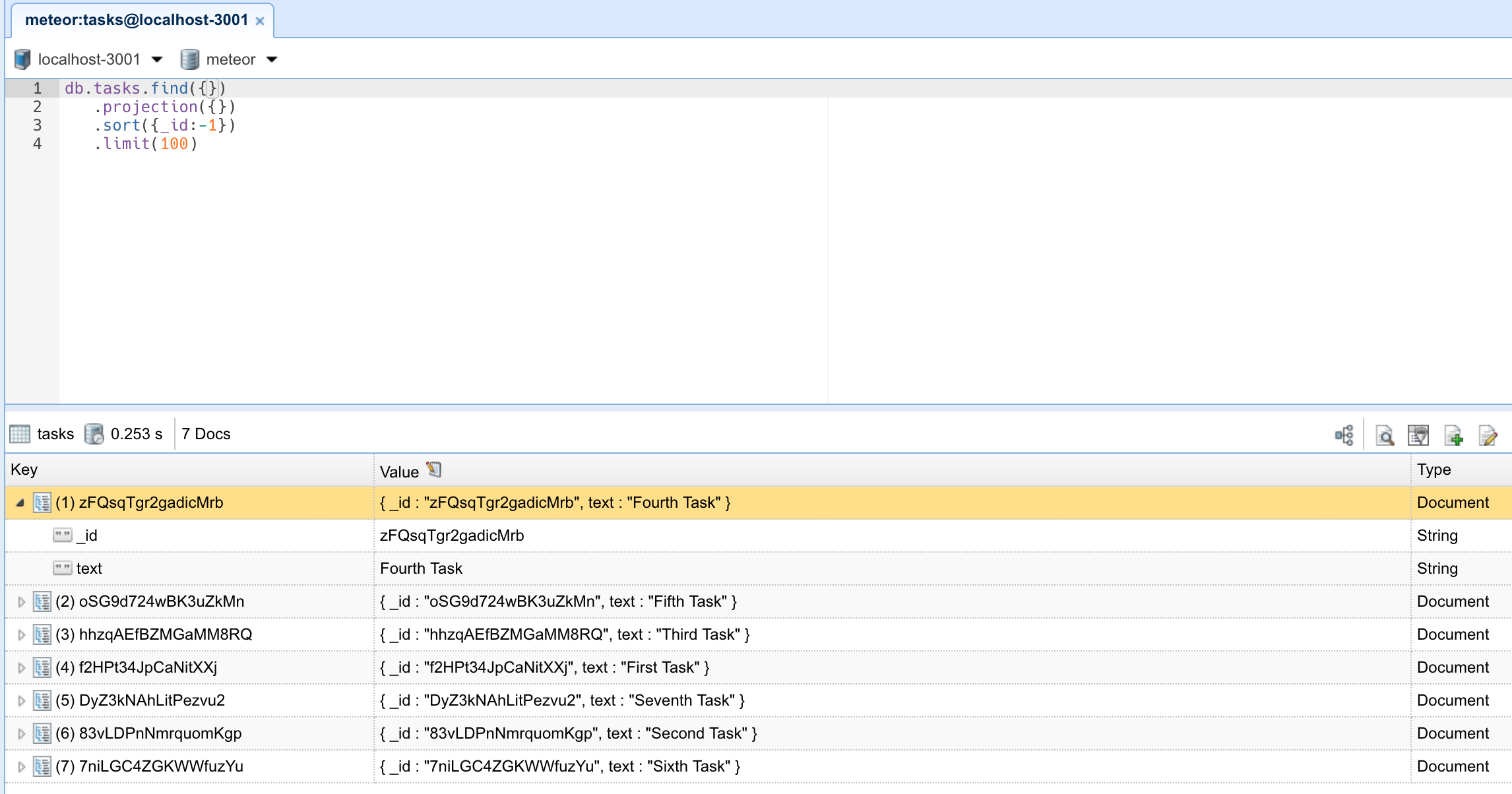 tasks = TasksCollection.find(filter, { sort: { createdAt: -1, _id: -1 } }).fetch();