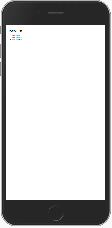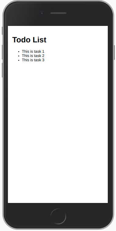 We just modified our main Svelte component App.svelte, which will be rendered into the #app div in the body. It shows a header and a list of tasks. For now, we're using static sample data to display the tasks.